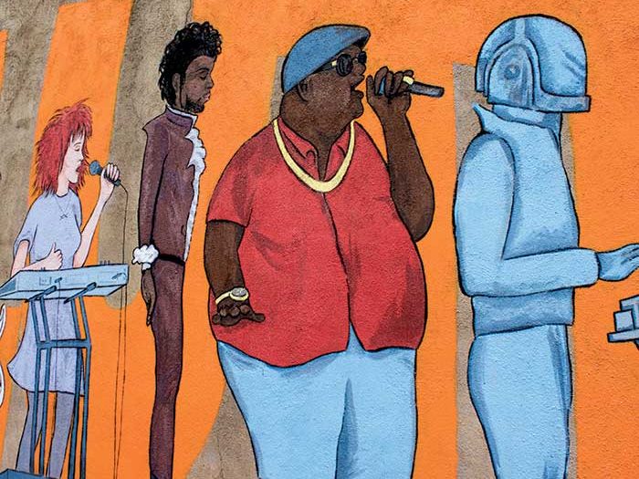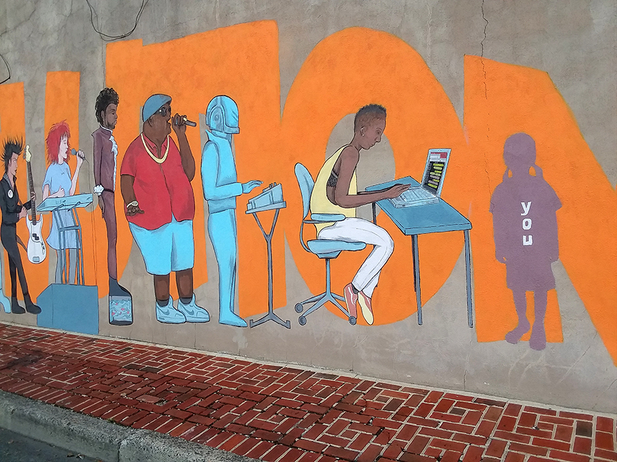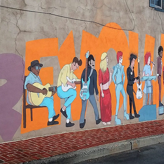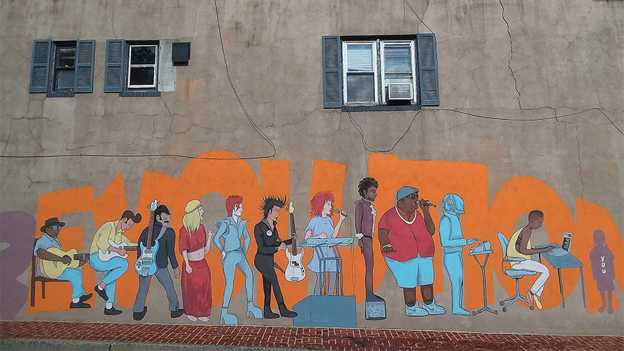 ‘Musical rEVOLUTION’ mural for the Cure Cafe, located across from the Sherman Theater in Stroudburg, PA. In the summer of 2018 I won a design competition and was selected to paint a large music themed public art piece. With the help of the Pocono Arts Council, I managed a small team of artists and oversaw the art direction.